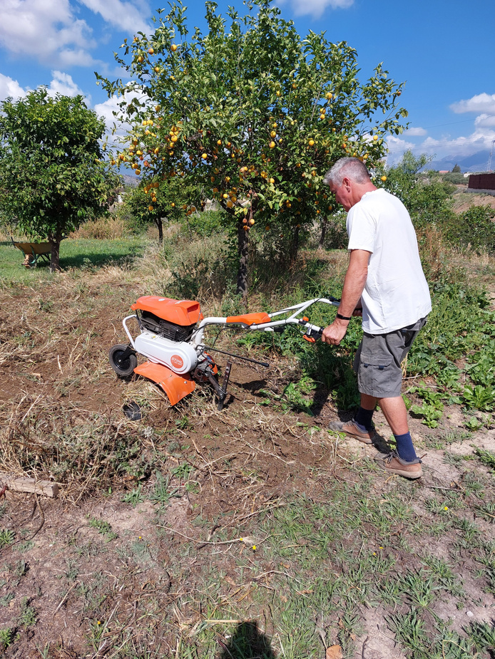 While the summer vegetables are largely taking care of their business of growing, if you're lucky enough to have the space, use this time to clear and prepare new beds for use later in the year. For us, this has meant rotivating the larger beds in the fruit orchard and trimming some trees that are getting in the way, so that we can get around without fear of receiving a poke in the back from a low hanging branch! I'll just acknowledge here that June is NOT ideally the time to be trimming your fruit trees here in Southern Spain, this is usually reserved for the winter. Our trees are well-established, however, so apart from the promise of a reduced citrus crop, no other harm will be done.
