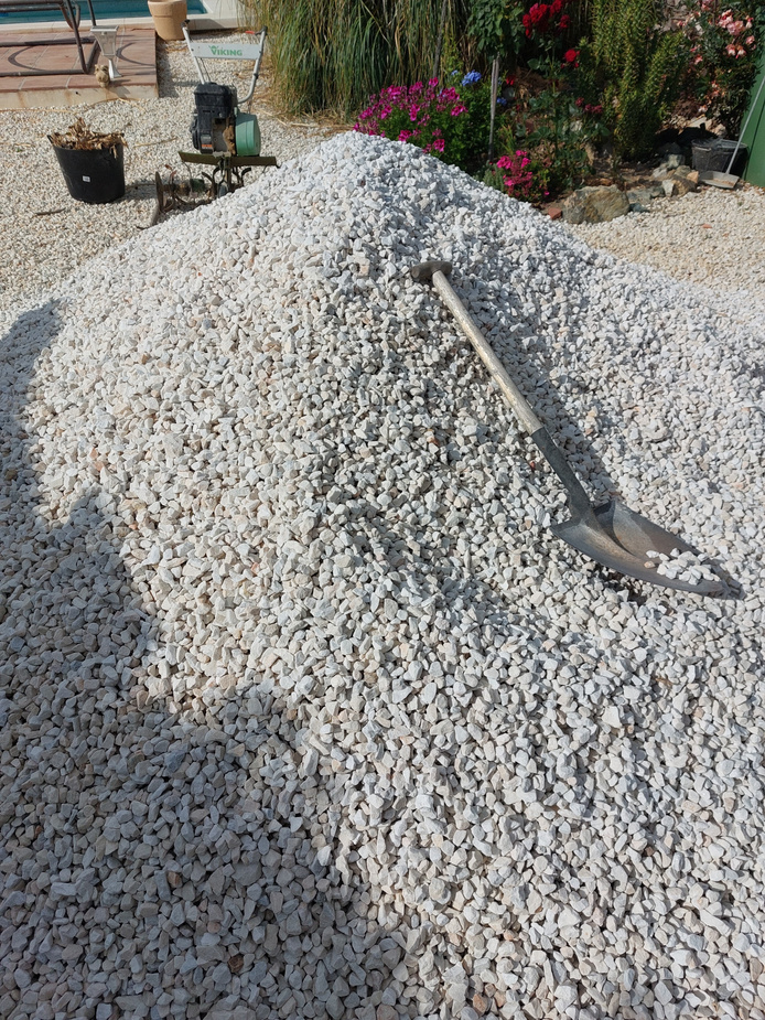 I forgot to mention: Hubby (a.k.a: THe Head Gardener) ordered some stone to make footpaths in between our raised beds. This little lot's gonna take some shifting!